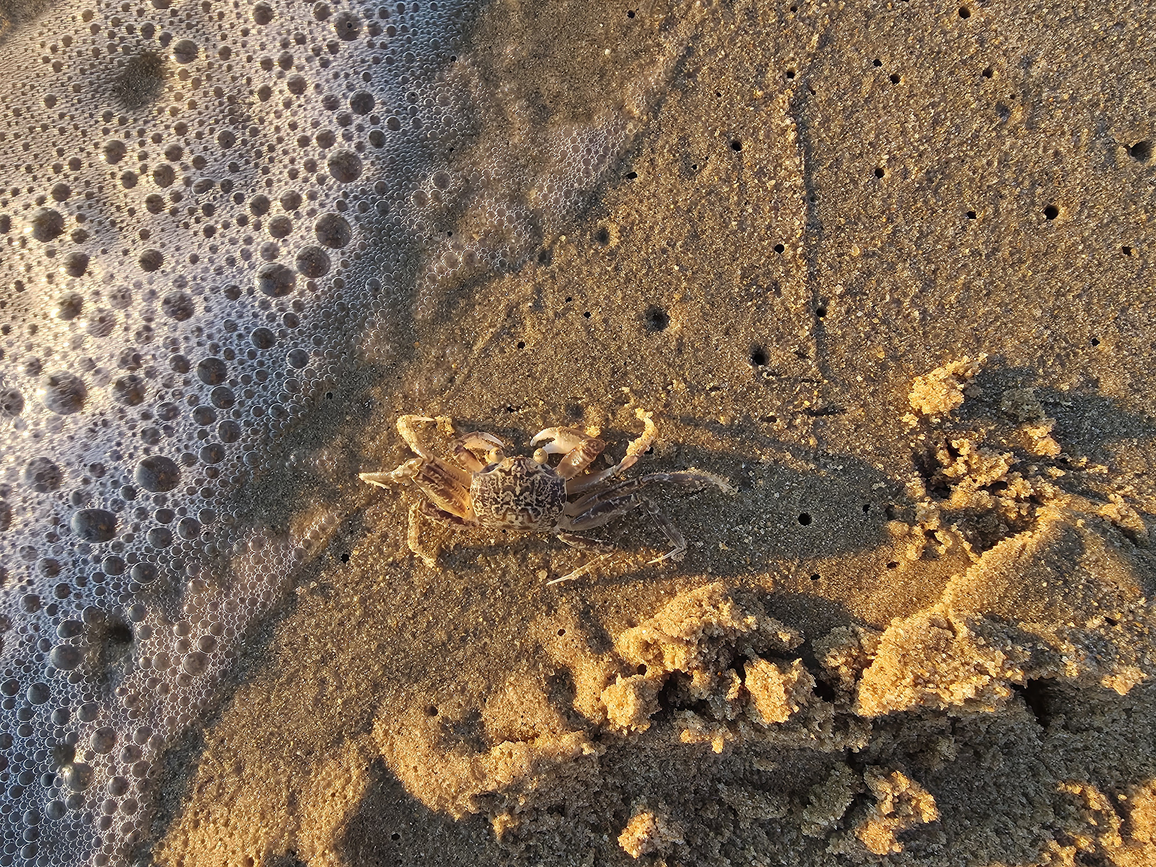 파도에 밀려와 발을 간지럽히고 밀려가는 모래들